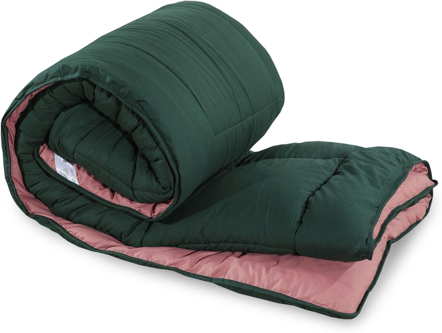 Snug Threads 2-in-1 Reversible Coverless Poly Cotton Hotel Quality Duvet - Bottle Green & Dusty Pink